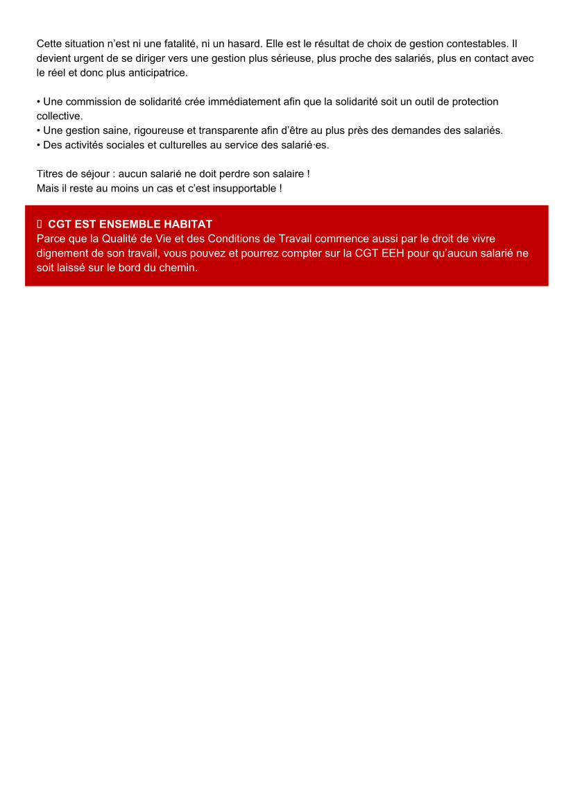 C’est le cas pour un salarié de Est-Ensemble Habitat. La CGT en lien avec la CFDT met tout en œuvre pour que leur collègue ne soit pas inquiété et demande aux Elus et à la Direction de EEH d’intervenir et d’agir.