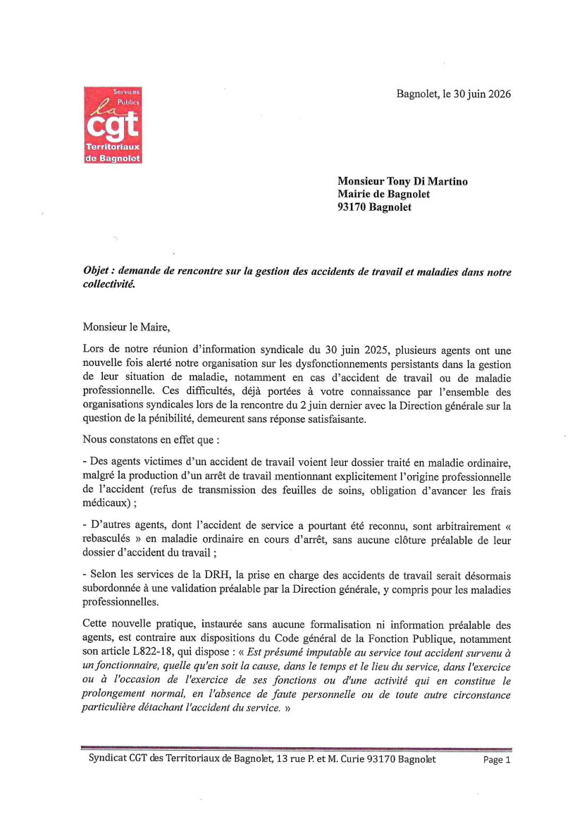 Les personnels de la ville se sont réunis hier 30 juin et ont fait état de leur difficultés qu’ils rencontrent dans la cadre de la gestion au quotidien notamment en cas d’accidents du travail, ou de maladie professionnelle.